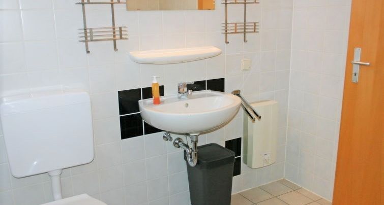 - Badezimmer mit Dusche und Waschtisch