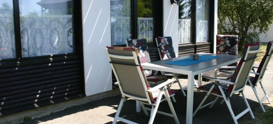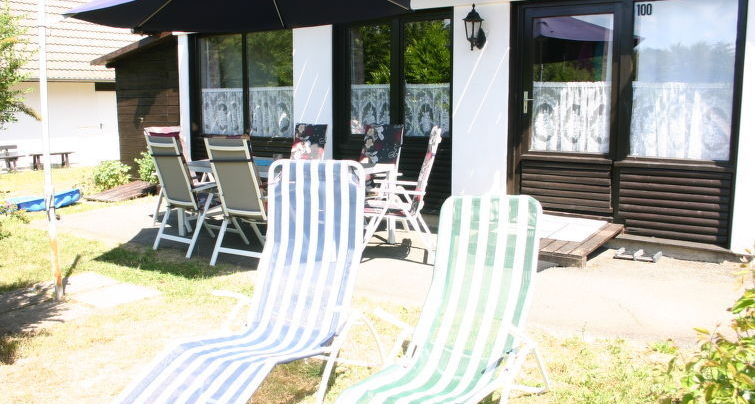 Das 6 Personen Ferienhaus mit einer Fläche von ca. 75 m2 ist modern und mit viel Holz eingerichtet. Im Erdgeschoss finden Sie das Wohnzimmer mit TV, Klimaanlage und offener Küche mit 4-Flammen-Keramikofen, Backofen, 4 Keramikkochfelder, Geschirrspüler und Mikrowelle. Hier finden Sie auch ein Schlafzimmer, das Badezimmer und eine separate Toilette. Im Obergeschoss befinden sich 2 Schlafzimmer und eine kleiner Balkon. Sie können eine große, teilweise überdachte Terrasse mit Möbeln, Waschmaschine und einem Grill nutzen. Das Haus ist rauchfrei und maximal 2 Haustiere sind erlaubt.