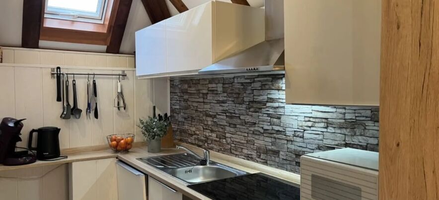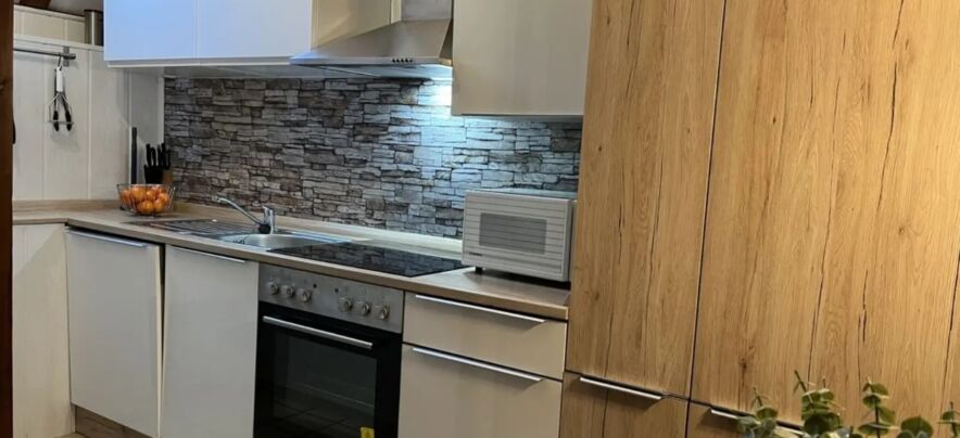 - Küche mit 4 Keramikkochfelder, Kühlschrank, Backofen, Mikrowelle und Kaffeemaschine