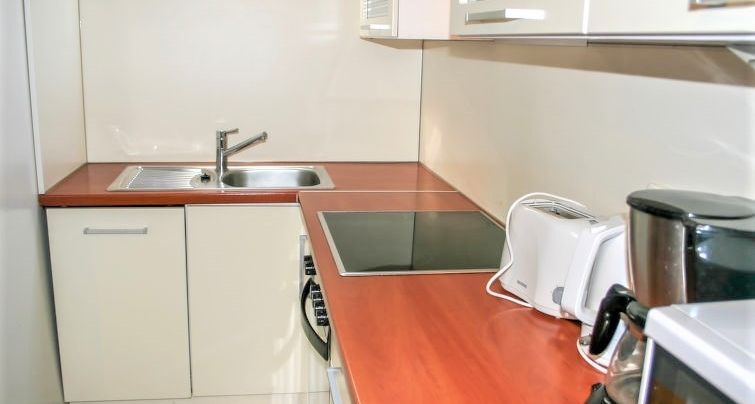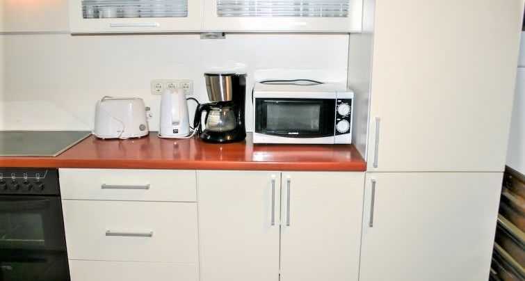 - Küche mit 4 Keramikkochfelder, Kühlschrank, Backofen, Mikrowelle und Kaffeemaschine