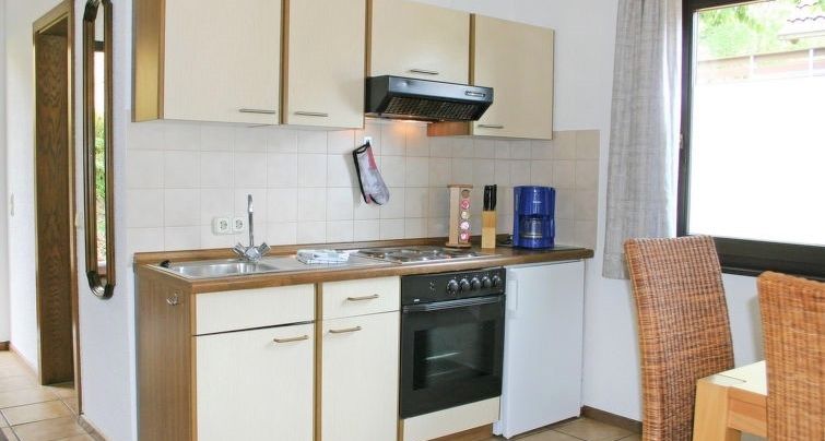- Küche mit 4 Keramikkochfelder, Kühlschrank, Backofen, Mikrowelle und Kaffeemaschine