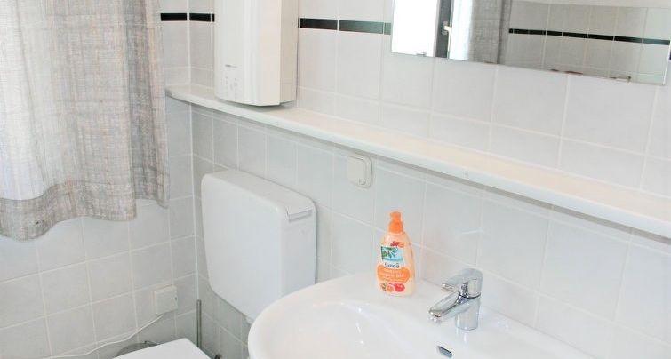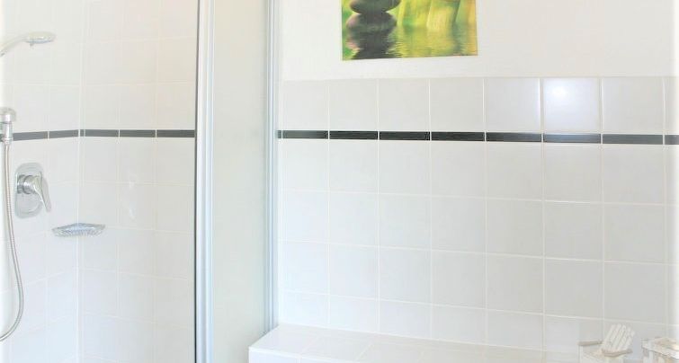 - Badezimmer mit Dusche und Waschtisch