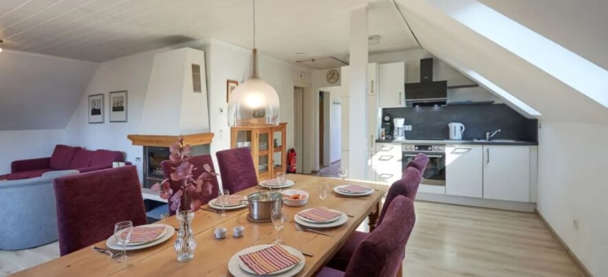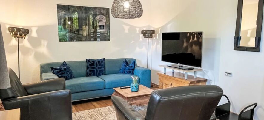 - Wohn-/Esszimmer 30m2 mit Kabel-TV (Flachbildschirm), Schwedenofen