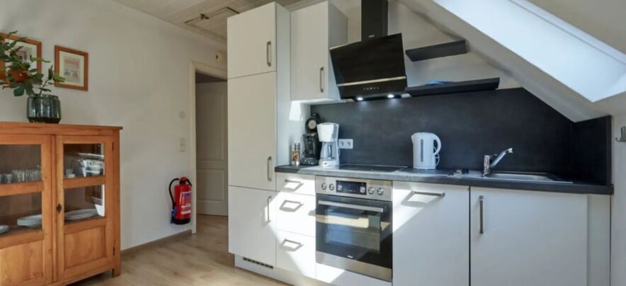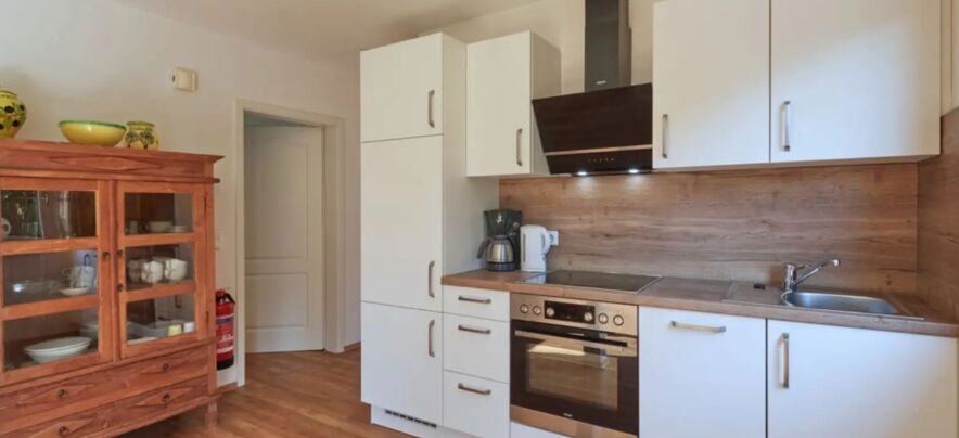 - Küche mit 4 Keramikkochfelder, Kühlschrank, Backofen, Mikrowelle und Kaffeemaschine