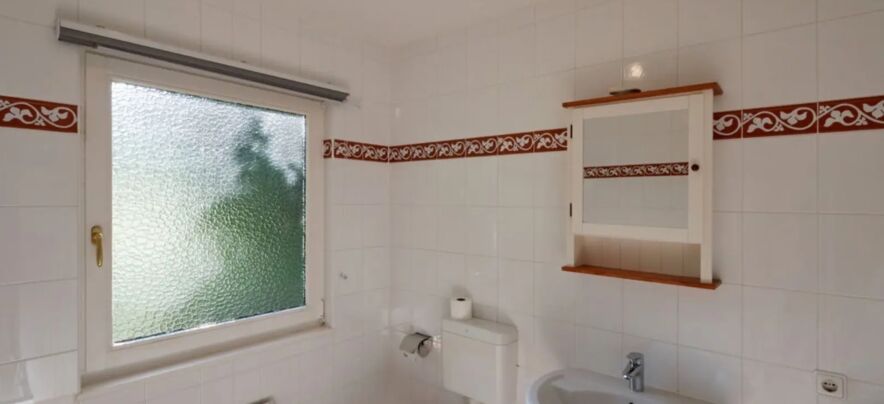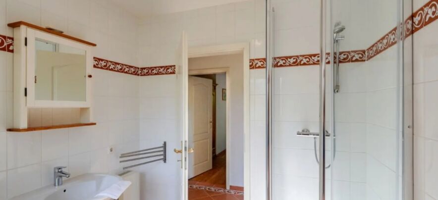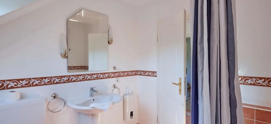 - Badezimmer mit Dusche und Waschtisch