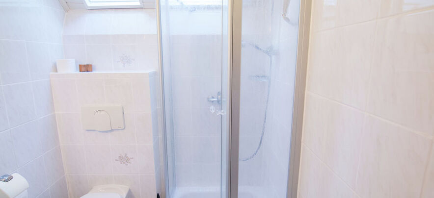 - Badezimmer mit Dusche und Waschtisch