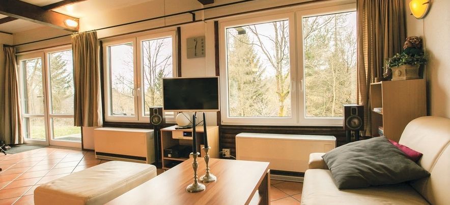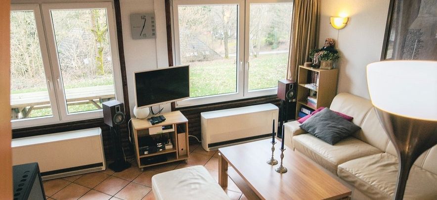 - Wohn-/Esszimmer 30m2 mit Kabel-TV (Flachbildschirm), Klimaanlage, Stereoanlage, Schwedenofen