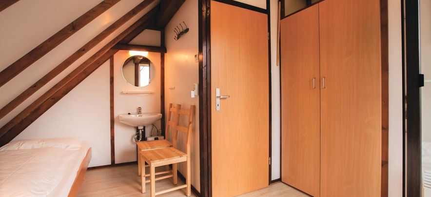 - Schlafzimmer mit Doppelbett (180x200 cm) und Waschtisch
